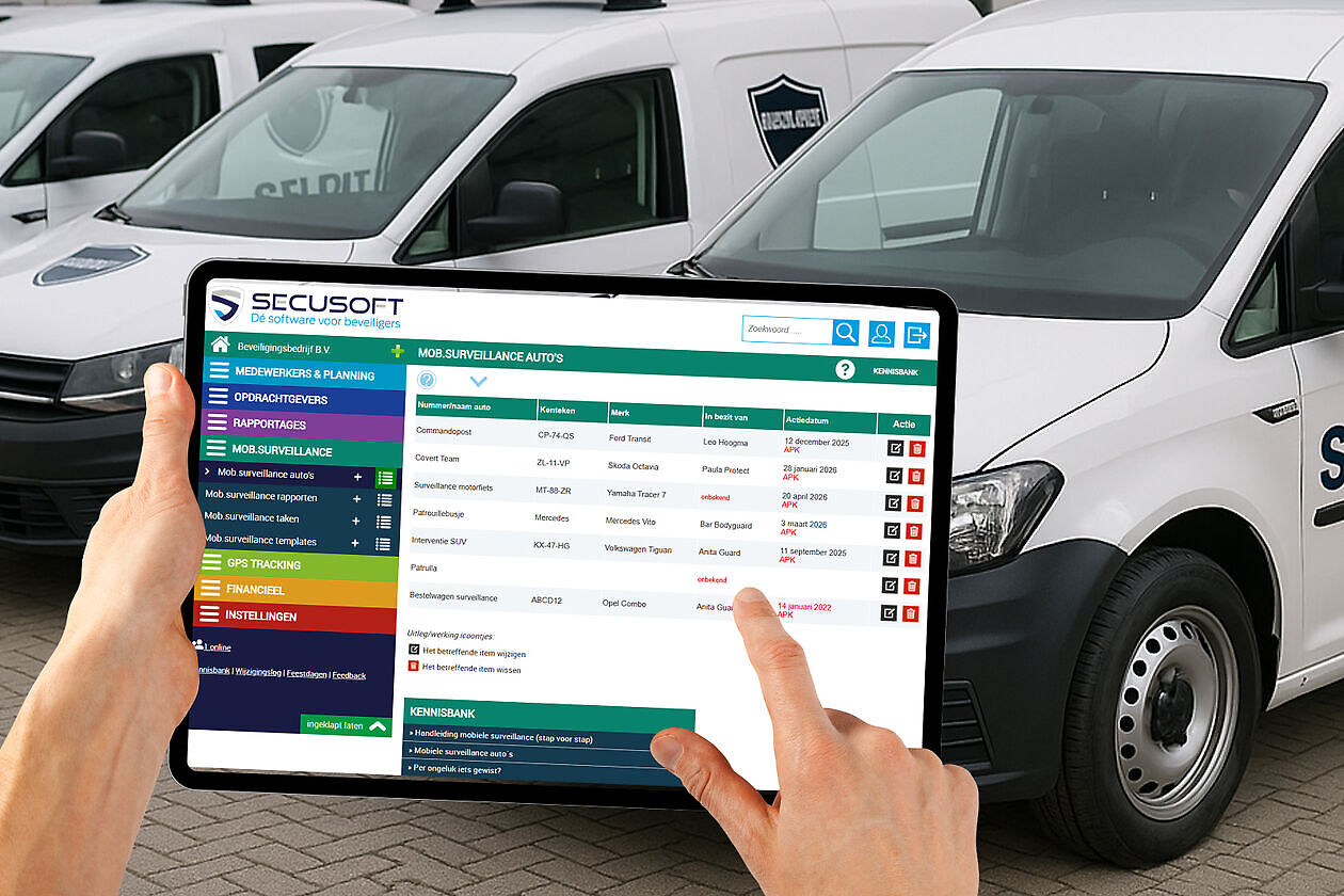 Met de module "Mobiele surveillance auto's" heb je in Secusoft al jouw bedrijfswagens op één plek, in een helder overzicht.